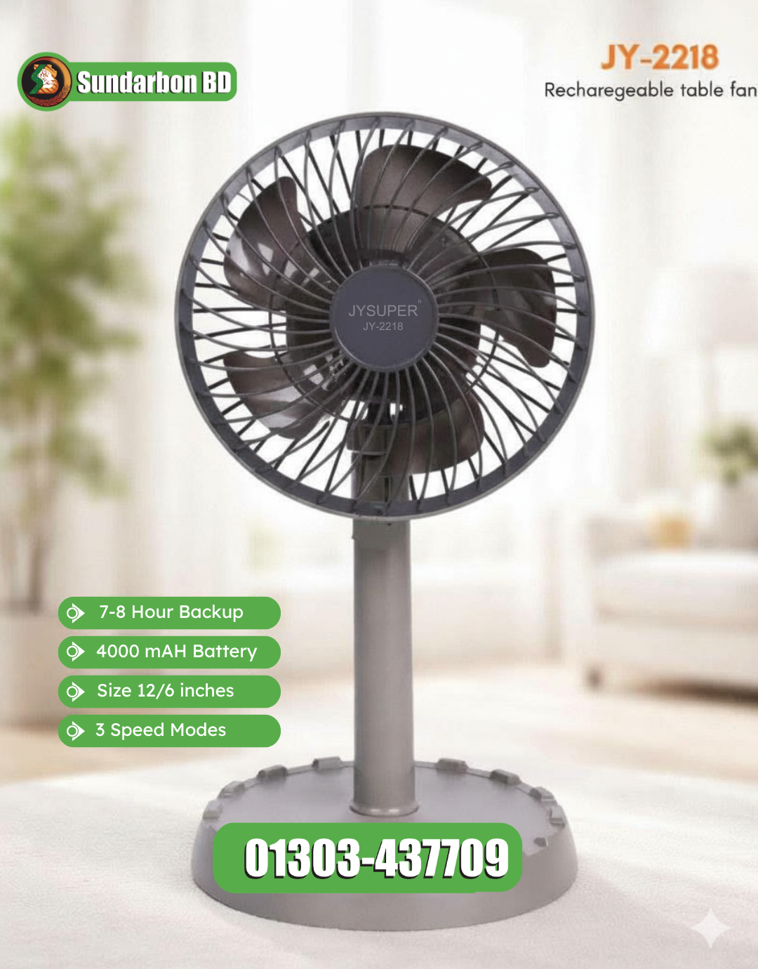 | 4 | Speed Modes | 3 (Low – 6 hours, Medium – 4 hours, High – 3 hours) |
